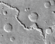 火星表面に見られる筋状の模様。過去に水が流れていた跡の可能性があります。