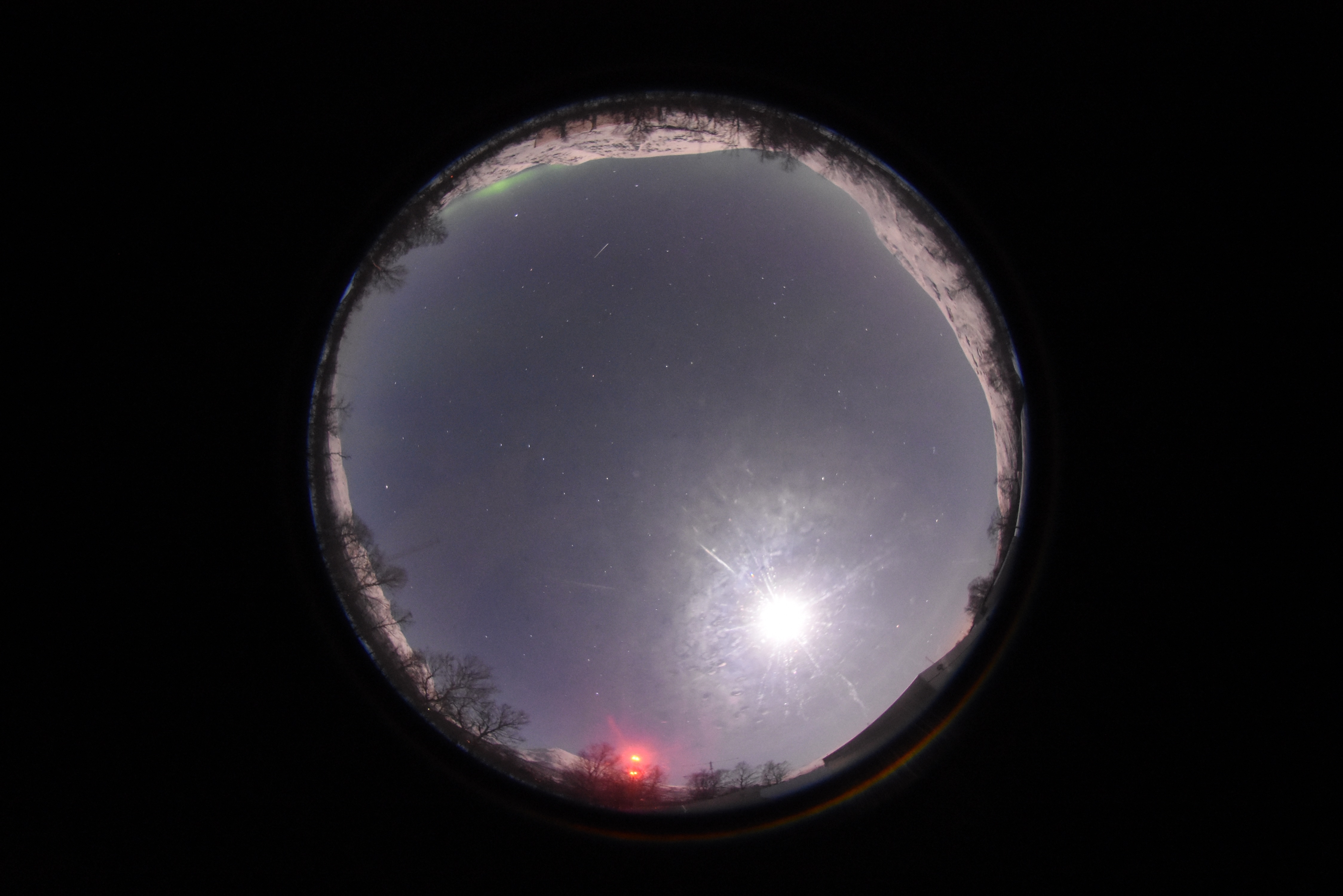 Meteor trail wth bright moon